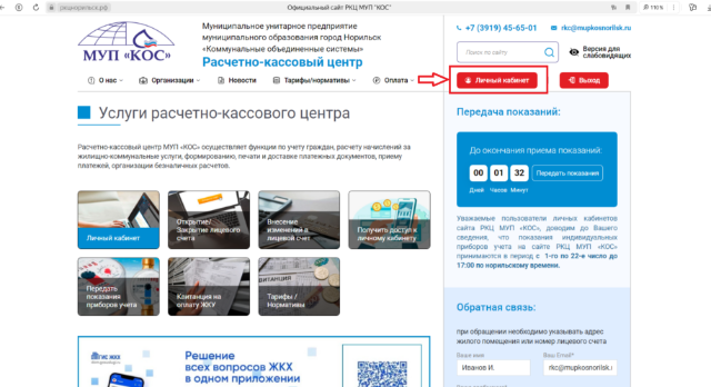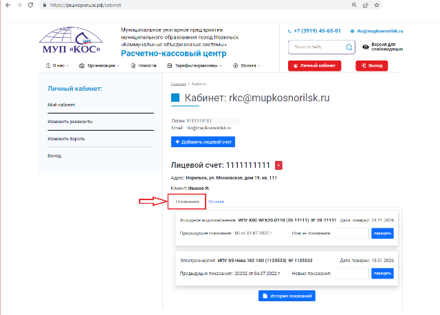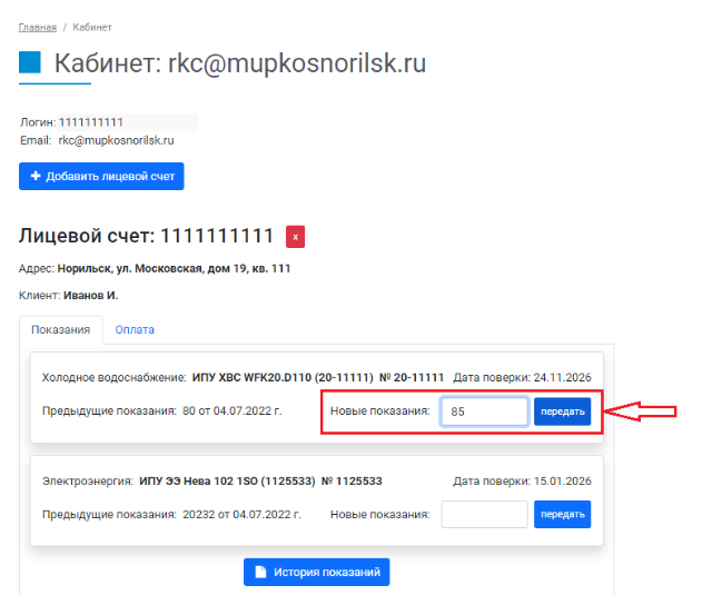 2.Передача показаний на сайте
